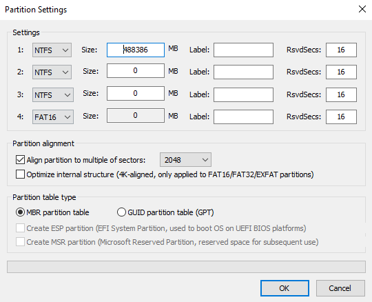 Digitando ad esempio 99999999 in corrispondenza della prima partizione, BootIce si attrezzerà per la creazione di un’unica partizione delle dimensioni pari all’esatta capienza dell’unità.