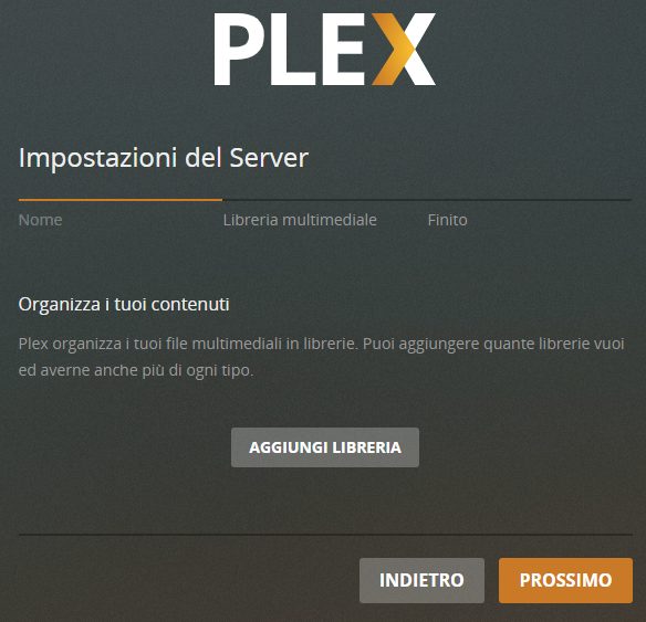 Con un clic sul pulsante Aggiungi libreria è possibile specificare la o le cartelle che Plex dovrà scansionare alla ricerca di contenuti da presentare ai client connessi.