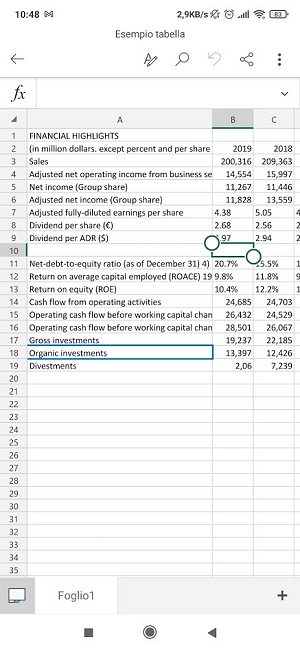 Importare una tabella da smartphone in Excel