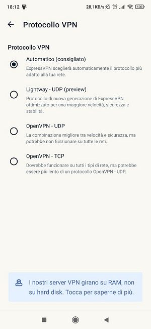 Sia Lightway che WireGuard (utilizzato con un altro nome da parte di altri provider VPN, come ad esempio NordVPN che ha scelto l’appellativo NordLynx) utilizzano un codice snello, algoritmi crittografici moderni, prestazioni migliori e connessioni stabili (con la possibilità di passare da una rete all’altra (connessione dati dell’operatore di telefonia mobile, connessione via cavo Ethernet o WiFi) senza perdere il collegamento con la VPN.