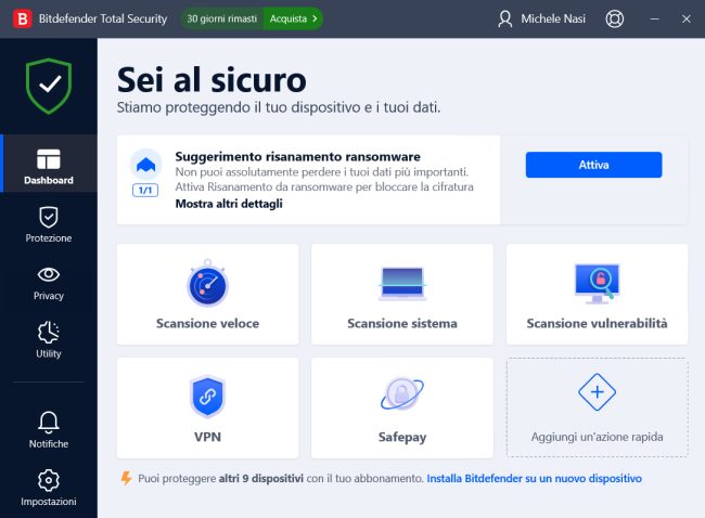 La soluzione di Bitdefender si presenta come un vero e proprio punto di riferimento per la sicurezza del sistema in uso e degli altri dispositivi che si possiedono.