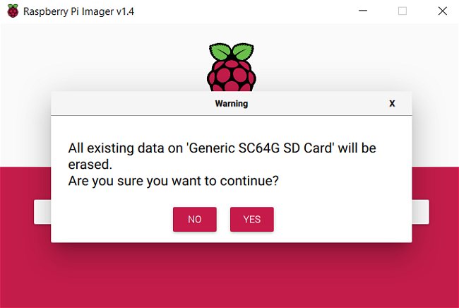 Selezionando Choose SD Card si dovrà selezionare la scheda SD collegata al PC quindi confermare la sovrascrittura del suo contenuto cliccando su Write.