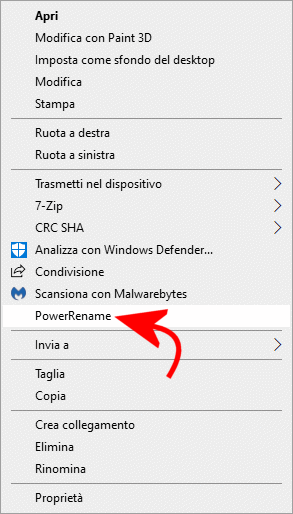 PowerRename si integra con l’interfaccia di Windows 10: dopo aver aperto una finestra di Esplora file, basterà selezionare i file e le cartelle da rinominare quindi cliccarvi con il tasto destro e scegliere infine la voce PowerRename.