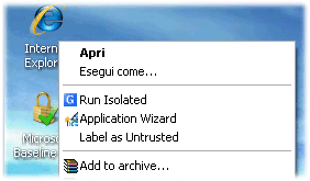 Per avviare un’applicazione in modalità protetta – od “isolata”, come indica GesWall – è sufficiente fare clic con il tasto destro del mouse sull’eseguibile o sul collegamento allo stesso e scegliere il comando Run isolated. Mentre Sandboxie inserisce il simbolo [ # ] nella barra del titolo delle applicazioni avviate all’interno della “sandbox”, GesWall le evidenzia – in modo predefinito – facendo lampeggiare la barra del titolo stessa. Tale indicazione visuale è liberamente personalizzabile cliccando sull’icona “G” e scegliendo l’impostazione preferita (Blink effect).