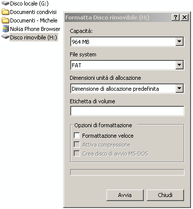 Come primo passo, la chiavetta USB deve essere formattata accedendo a Risorse del computer, facendo clic con il tasto destro sull’unità quindi scegliendo il comando Formatta…. Prima di premere il pulsante Avvia, ci si assicuri di avere effettuato una copia di backup del contenuto della penna USB: con la formattazione, infatti, tutti i dati saranno persi.