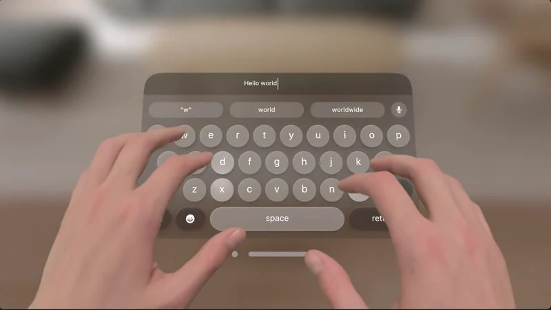 A detta di Apple, i tasti della tastiera virtuale solo leggermente sollevati così da restituire all’utente un qualcosa di molto simile alla reale digitazione su una tastiera fisica. Per centrare questo obiettivo è previsto anche un feedback tramite effetti sonori spaziali per “compensare le informazioni tattili assenti”.