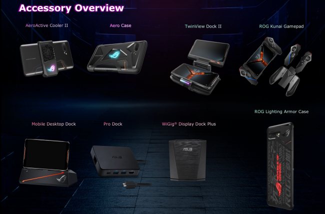 ASUS ha annunciato una serie di accessori che accompagneranno il ROG Phone II. Citiamo il TwinView Dock II per trasformarlo in un dispositivo dotato di secondo schermo, l’AeroActive Cooler II ossia una ventola per ridurre le temperature durante il gioco ed evitare limitazioni termiche.