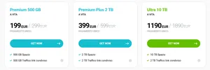 L’offerta si articola in tre opzioni principali, pensate per esigenze diverse. Il piano Premium offre 500 GB di spazio a un prezzo scontato rispetto al listino standard. Salendo di livello, il Premium Plus mette a disposizione ben 2 TB, mentre chi ha bisogno di archiviare grandi quantità di dati può puntare sul piano Ultra da 10 TB, anch’esso proposto con uno sconto significativo. Tutti i pacchetti includono una garanzia soddisfatti o rimborsati di 14 giorni e sistemi di pagamento protetti, per acquistare in totale tranquillità.