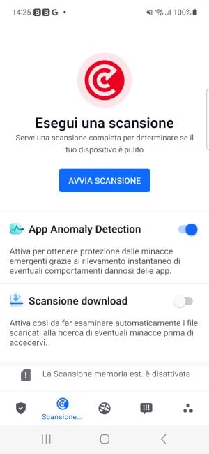 Bitdefender App Anomaly Detection è una nuova tecnologia integrata in Bitdefender Malware Scanner che fornisce un ulteriore livello di protezione, monitorando e rilevando continuamente qualsiasi comportamento dannoso sul terminale Android. Nel caso in cui qualsiasi app Android installata dovesse manifestare un comportamento sospetto, la minaccia viene bloccata e l’utente immediatamente avvisato.