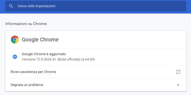 Per aggiornare rapidamente la versione di Chrome in uso, suggeriamo di digitare chrome://settings/help nella barra degli indirizzi.