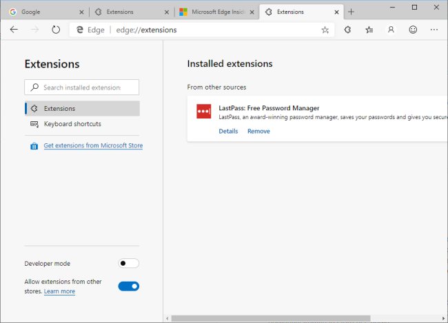 Il successo di un browser si basa anche sul numero di estensioni disponibili: la buona notizia è che il nuovo Edge “Chromium-based” non soltanto supporta alcune decine di componenti aggiuntivi pubblicati sullo store online di Microsoft ma consente di scaricare e installare anche le estensioni ospitate sul Chrome Web Store.