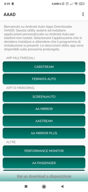 AAAD consente l’installazione di varie applicazioni multimediali oltre che delle più famose soluzioni per il mirroring su Android Auto del contenuto dello schermo dello smartphone: è cioè possibile mostrare sullo schermo in-car tutti i contenuti delle applicazioni via via a aperte sul telefono Android.