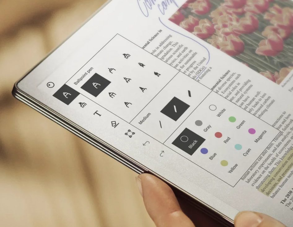 I modelli precedenti di display E Ink, inoltre, avevano un tempo di aggiornamento relativamente lento, aspetto che ne rendeva difficoltoso l’uso per le applicazioni che richiedono velocità, come la riproduzione dei video o la resa di interfacce dinamiche. E Ink Gallery 3 riduce significativamente il tempo di aggiornamento dello schermo, consentendo un’esperienza utente più fluida e rapida durante la navigazione, la scrittura o l’interazione con contenuti dinamici.