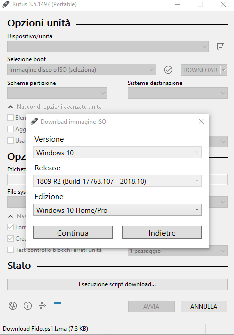 Si tratta dello stesso script Powershell Fido che abbiamo presentato nell’articolo Scaricare Windows 7, Windows 8.1 e Windows 10 dai server Microsoft al paragrafo Dallo stesso autore di Rufus: scaricare i file ISO di Windows 10 e Windows 8.1 con uno script Powershell.