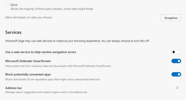 A questo punto digitando edge://settings/privacy nella barra degli indirizzi quindi attivando l’opzione Block potentially unwanted apps nella sezione Services, la protezione risulterà effettivamente abilitata.