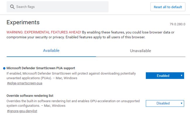 Per attivare la protezione contro gli oggetti software potenzialmente indesiderati è necessario digitare edge://flags/ nella barra degli indirizzi, scrivere pua nella casella Search flags, porre su Enabled l’impostazione Microsoft Defender SmartScreen PUA support e riavviare il browser.