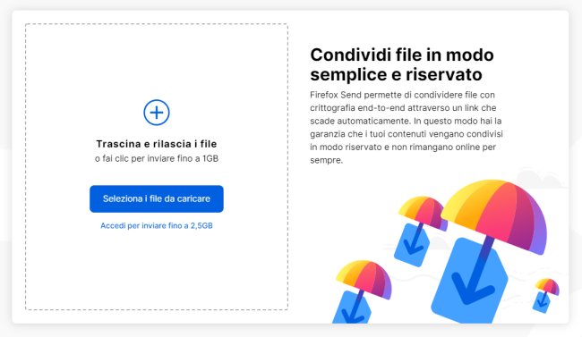 Firefox Send (raggiungibile a questo indirizzo) è uno strumento che può essere subito aggiunto a quelli presentati nell’articolo Come inviare file pesanti via email.