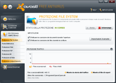 Il primo (Protezione file system) è quello principale ed è l’analogo della “protezione standard” fornita in Avast! Home 4.x. Esso si occupa di sorvegliare in tempo reale l’attività del disco fisso a livello di file system individuando e bloccando tempestivamente eventuali componenti dannosi.