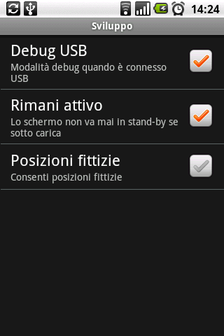 A questo punto, portandosi sul dispositivo Android 4.0, bisognerà accedere alla schermata delle impostazioni, portarsi all’interno del sottomenù Sviluppo, quindi attivare l’opzione Debug USB.