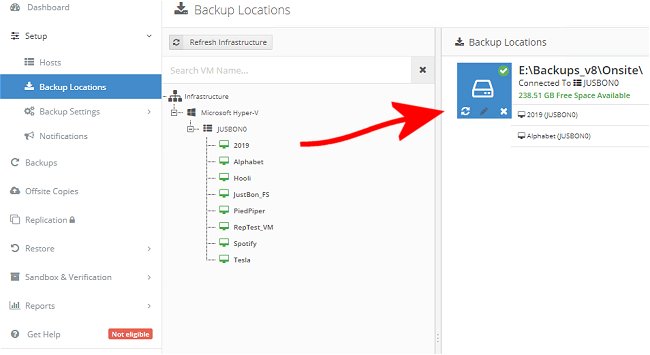 Il passaggio seguente consiste nel fare clic su Backup locations per definire dove si vogliono memorizzare i backup delle macchine virtuali Hyper-V e VMware. Si possono indicare come destinazione unità locali oppure percorsi di rete (ad esempio un server NAS configurato in RAID).