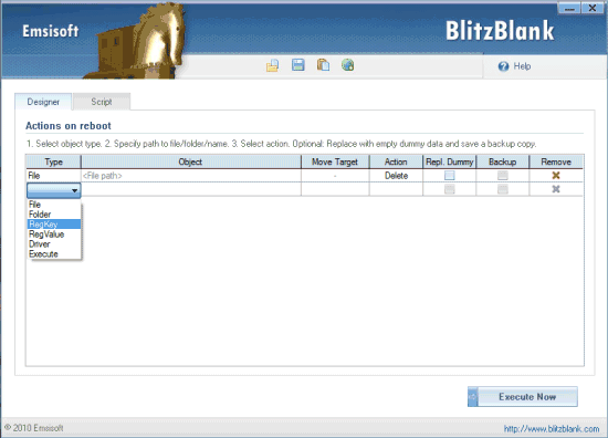 Come altre utilità della sua categoria (si pensi, ad esempio, a Combofix), anche BlitzBlank supporta l’uso degli script.