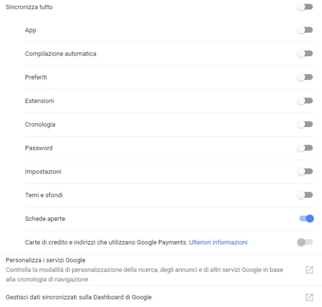 Noi abbiamo lasciato attivata la sincronizzazione delle schede aperte in Chrome per necessità di lavoro.