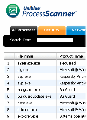 Un altro interessante software gratuito, ancora poco conosciuto, che si occupa di esaminare le applicazioni in esecuzione confrontando le informazioni reperite con quelle memorizzate nel database online mantenuto dalla software house produttrice, si chiama ProcessScanner.