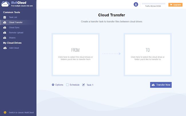 Il piano gratuito di MultCloud permette di trasferire al massimo 30 GB di dati ogni giorno.