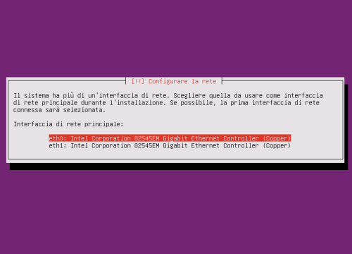 Il passo successivo consiste nell’indicare la scheda di rete da usare come interfaccia principale (nel nostro caso abbiamo selezionato la prima):