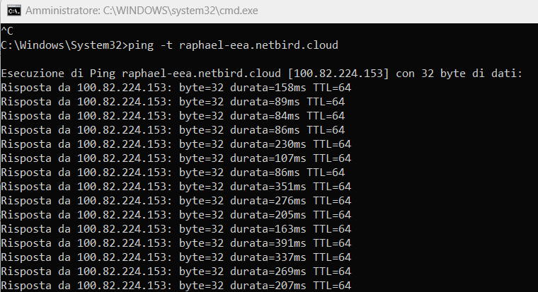Dal prompt dei comandi di un sistema Windows si può ad esempio digitare il comando ping seguito dal nome o dall’indirizzo IP di un altro nodo per verificarne la raggiungibilità. Nell’esempio in figura, si vede che un dispositivo remoto (in questo caso un terminale Android) collegato a una rete completamente diversa (tra l’altro dall’altra parte del mondo) risulta direttamente raggiungibile.