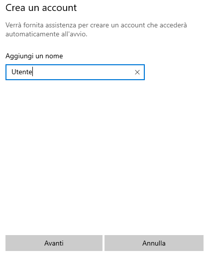 4) Premere il pulsante Inizia quindi specificare il nome da assegnare al nuovo account limitato.
