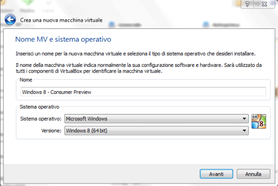 Installare Windows 8 “Consumer Preview” in una macchina virtuale con Virtualbox