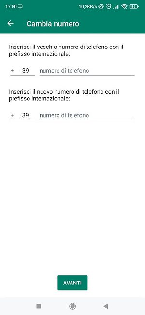 Per procedere è quindi necessario selezionare Cambia numero sullo smartphone che si intende abbandonare quindi specificare vecchio e nuovo numero telefonico.
