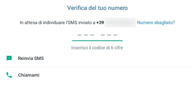 In realtà non è neppure necessario che la SIM della nuova utenza sia inserita nel vecchio smartphone: basta semplicemente digitare il codice di conferma ricevuto via SMS oppure farsi richiamare (“Chiamami“) su quella utenza. In caso di chiamata basterà inserire nella schermata Verifica del tuo numero il codice letto da una voce sintetizzata.