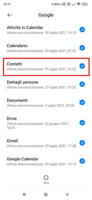 Va detto che per effettuare il backup dei contatti, delle foto e dei video non è indispensabile attivare il backup su Google Drive. È sufficiente che la voce Contatti si abilitata nelle opzioni di configurazione dell’account Google.