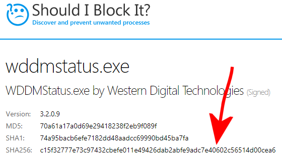 La firma SHA-256 dovrà essere quindi incollata nel campo Search del servizio Should I block (CTRL+V).