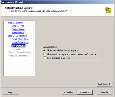 VMware Converter offre anche un’altra possibilità, quella di convertire macchine virtuali create in altri formati (ad esempio Microsoft Virtual Server/Virtual PC e Symantec Backup Exec System Recovery) in immagini compatibili e gestibili direttamente con i prodotti targati VMware.