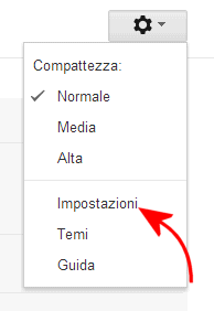Dopo aver effettuato il login, via web, al proprio account Gmail, è sufficiente accedere alla sezione Impostazioni (un clic sul pulsante con l’icona a forma di ingranaggio quindi Impostazioni).