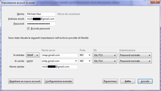 Facendo clic sul pulsante che consente di passare alla finestra successiva, alcuni client e-mail cercheranno di configurare autonomamente l’accesso all’account Gmail specificato.