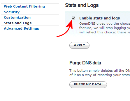 5) Per verificare quali siti web vengono visitati dai sistemi connessi in rete locale, è indispensabile accedere alla sezione Stats and logs ed attivare la casella Enable stats and logs.