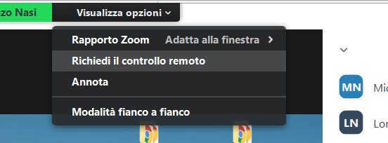 In alternativa è possibile cliccare su Visualizza opzioni quindi selezionare l’opzione Richiedi il controllo remoto.