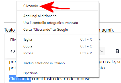 Cliccando con il tasto destro del mouse sulla parola indicata come scorretta, il correttore ortografico fornisce uno o più suggerimenti: è possibile selezionare una delle correzioni proposte.