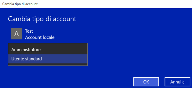 Quando si crea un nuovo account in Windows, questo di default appartiene al gruppo degli utenti normali (utente standard).