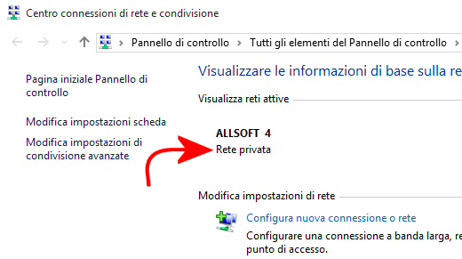 Nel Centro connessioni di rete e condivisione la tipologia di rete – pubblica o privata – è ben evidenziata.