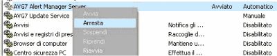 2. Accediamo alla finestra che mostra l’elenco dei servizi di sistema installati (da Start, Esegui… digitiamo services.msc e premiamo Invio) e terminiamo quei servizi che fanno riferimento al software che dobbiamo disinstallare, ricordandoci anche di selezionare Disabilitato come Tipo di avvio: