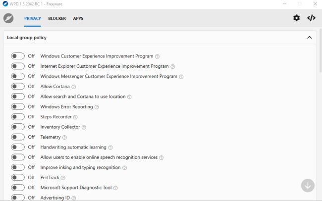 Per procedere in tal senso, dopo aver avviato WPD, bisogna fare clic su Privacy nella schermata principale quindi disattivare almeno gli “interruttori” Windows Customer Experience Improvement Program e Microsoft consumer experiences.