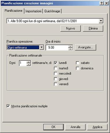 Per accedere alla finestra Pianificazione creazione immagini è sufficiente cliccare sul pulsante Pianificazione, visualizzato nella finestra principale di QuickImage.