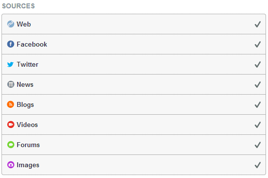 Dopo aver completo la procedura di registrazione, basterà scegliere i servizi che devono essere monitorati (motori di ricerca, social network, blog, contenuti video, immagini,…):