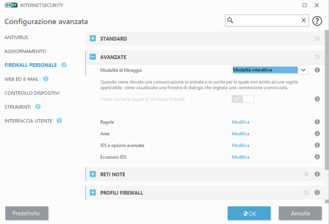 Ma è cliccando su Configurazione avanzata che si può accedere a tutte le impostazioni più evolute di ESET Internet Security 10.