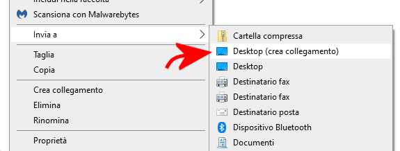 L’importante è non scegliere Desktop ma Desktop (crea collegamento).